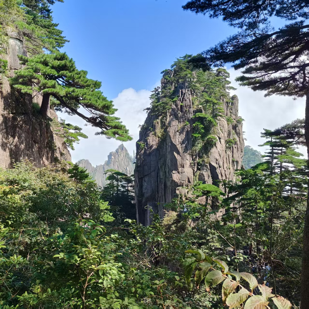 8:00:从玉屏索道站出发,前往玉屏楼,观赏闻名天下的迎客松,然后老道口检票口前往天都峰。攀登天都峰,感受 “黄山第一险峰” 的险峻与壮美,沿途欣赏奇峰怪石、苍松翠柏,登顶后可俯瞰黄山群峰,视野极为开阔。